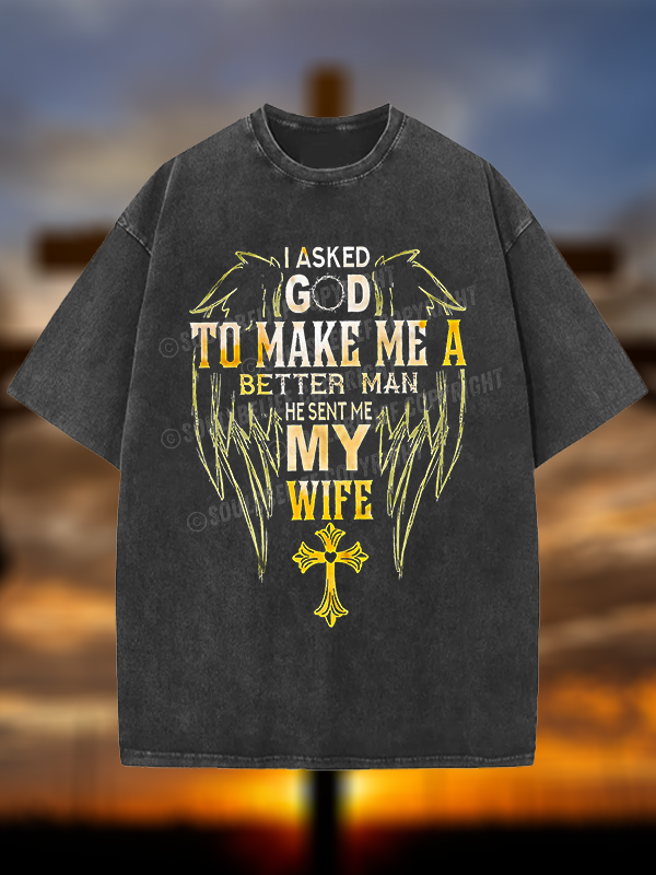 I Asked God To Make Me A Better Man He Sent Me My Wife Christian Washed T-Shirt