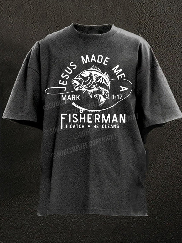 Jesus Made Me A Fisherman Christian Washed T-Shirt