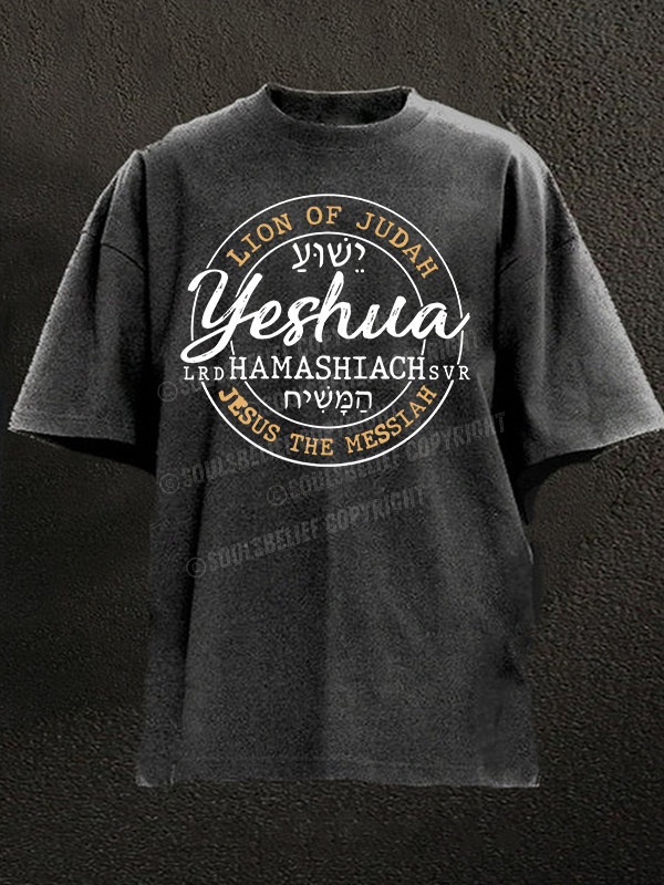 Yeshua Hamashiach Jesus the Messiah Lion Of Judah Christian Washed T-Shirt