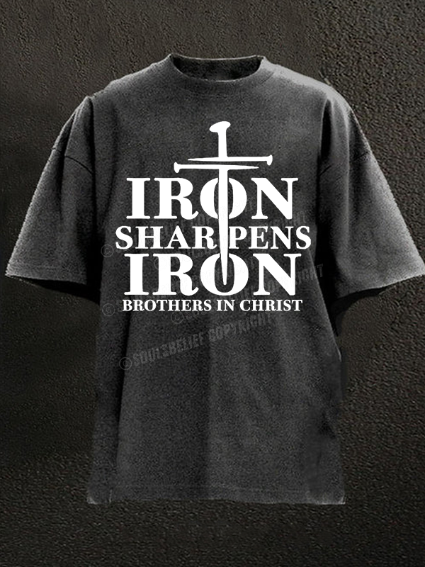 Iron Sharpens Iron Brothers in Christ Christian Washed T-Shirt