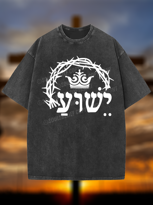 Yeshua Jesus name in Hebrew Christian Washed T-Shirt