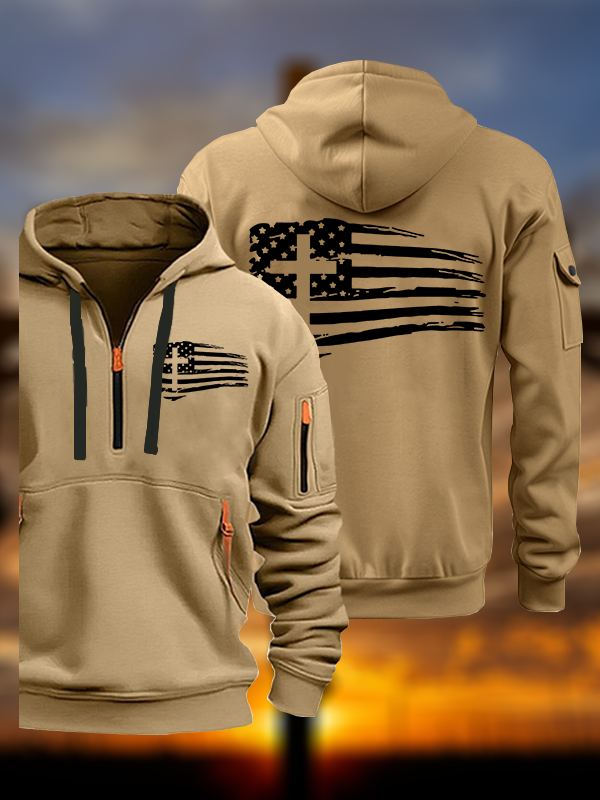 Tattered Flag Jesus God Christian Zipper Hoodies