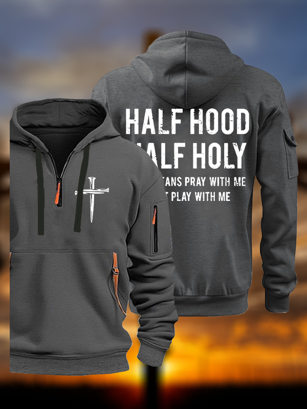 Half Hood Half Holy That Means Pray With Me Don't Play With Me Jesus God Christian Zipper Hoodies