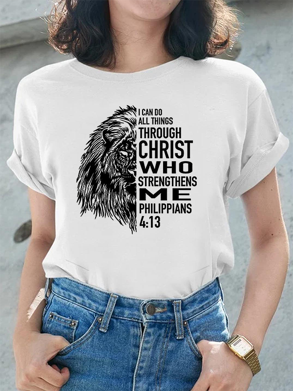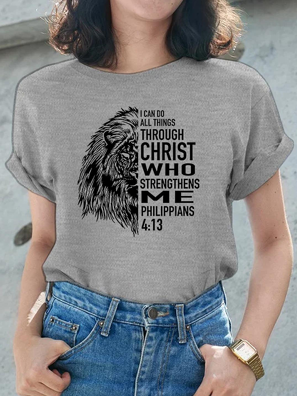 Philippians 4:13 Verse Lion I Can Do All Things Through Christ Christian Cotton T-Shirt