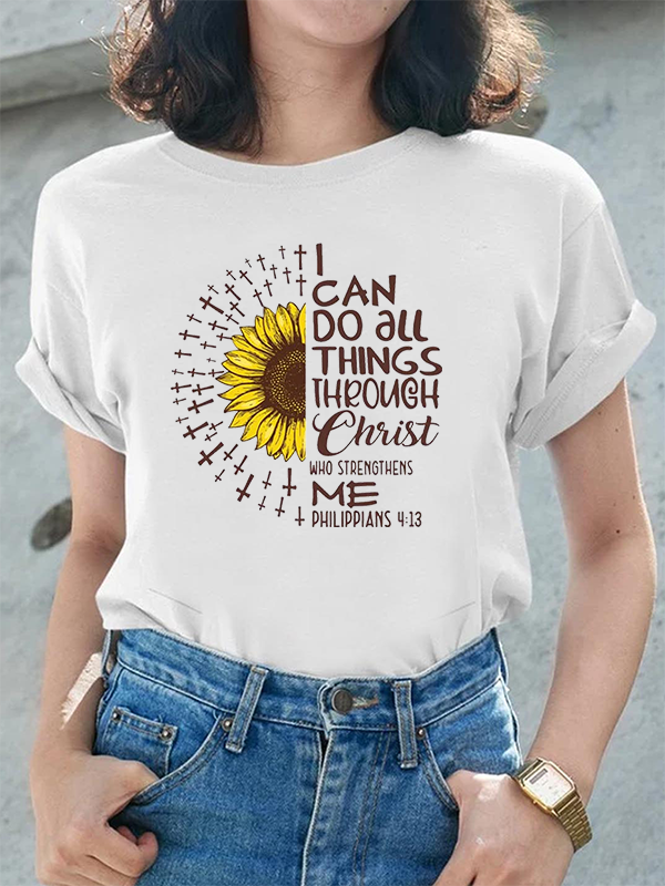 Philippians 4:13 Verse I Can Do All Things Through Christ Christian Cotton T-Shirt