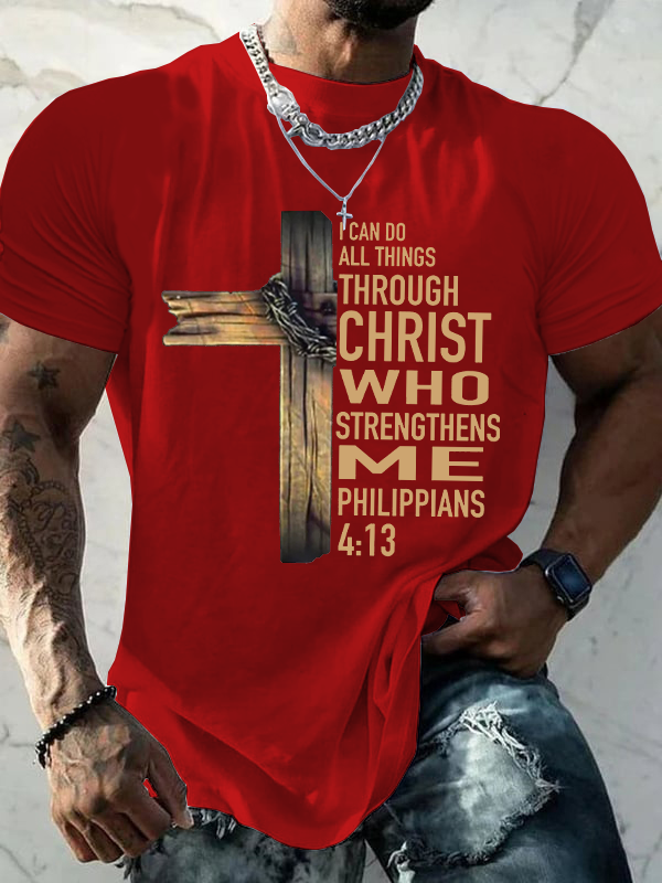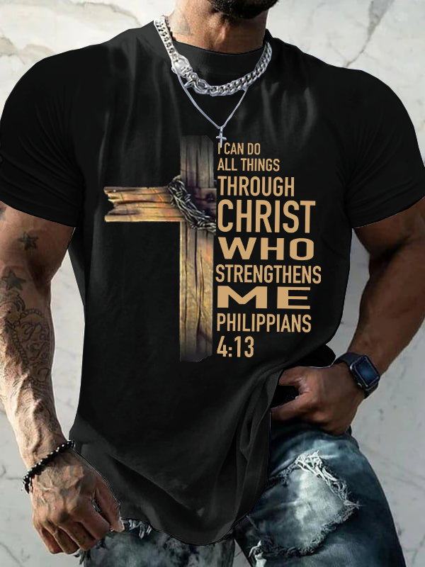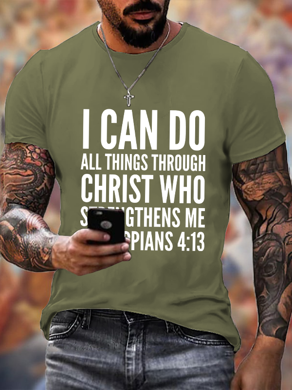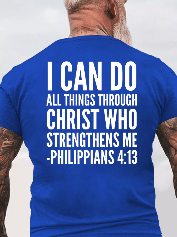 I Can Do All Things Through Christ Who Strengthens Me Philippians 4:13 Christian Cotton T-Shirt
