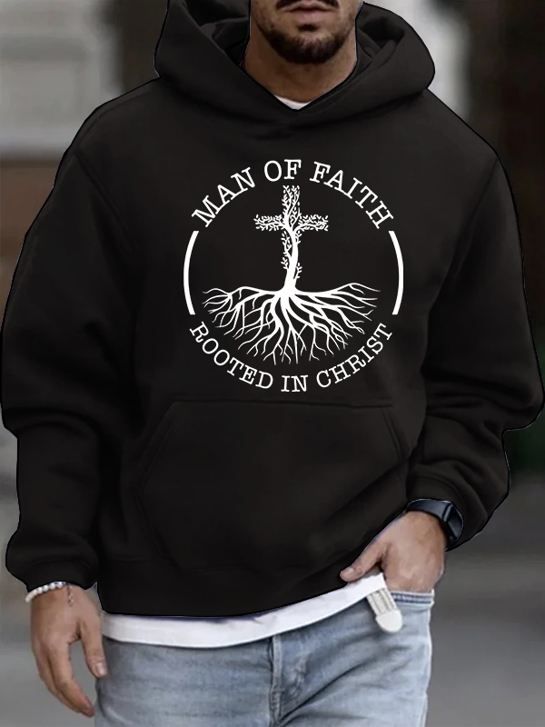 Man of Faith Jesus God Christian Plush Fleece-Lined Hoodie