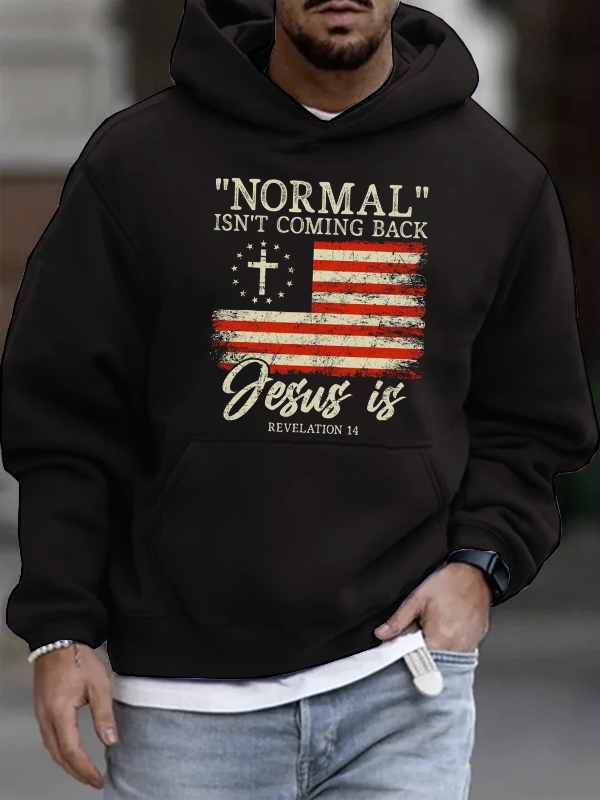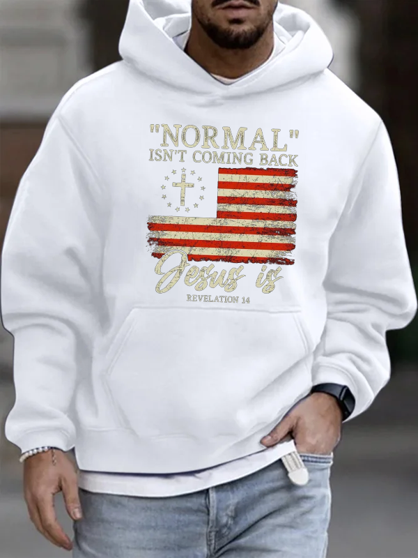 Men's Normal Isn't Coming Back, Jesus is with Flag Cotton Hoodie