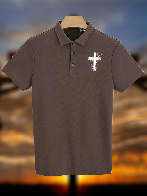 Faith Printed Cross Christian Cotton Short Sleeve Polo Shirt