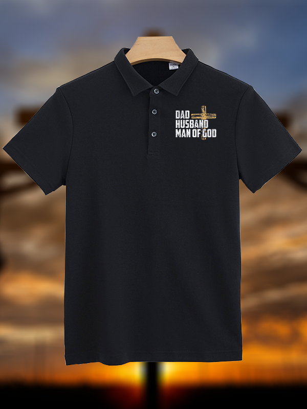 Dad, Husband, Man Of God Christian Cotton Short Sleeve Polo Shirt