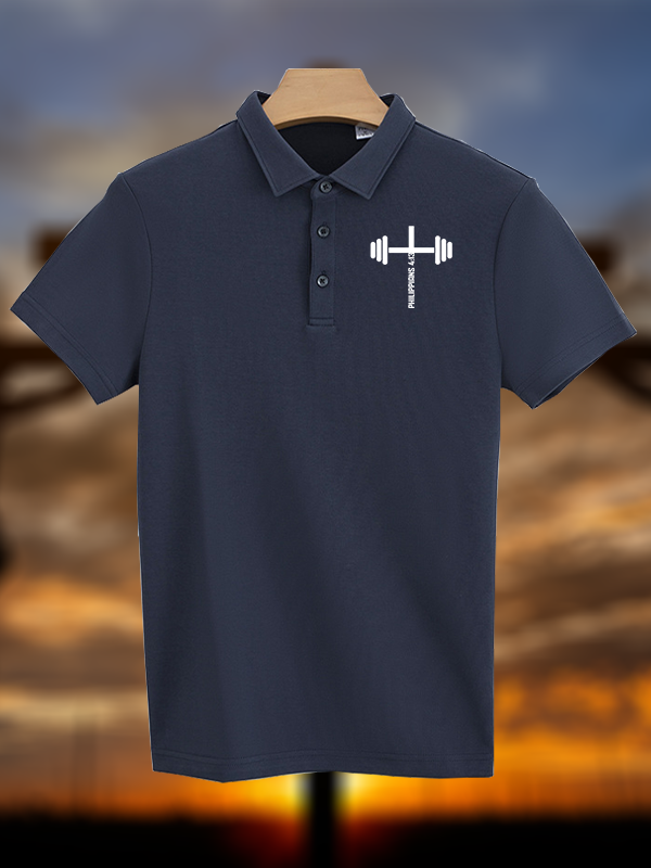 Fitness Philippians 4:13 Christian Cotton Short Sleeve Polo Shirt