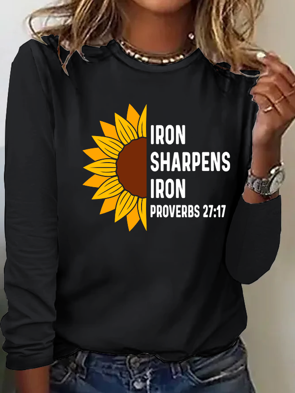 IRON SHARPENS IRON Proverbs 27:17 Christian Cotton Long Sleeve T-Shirt