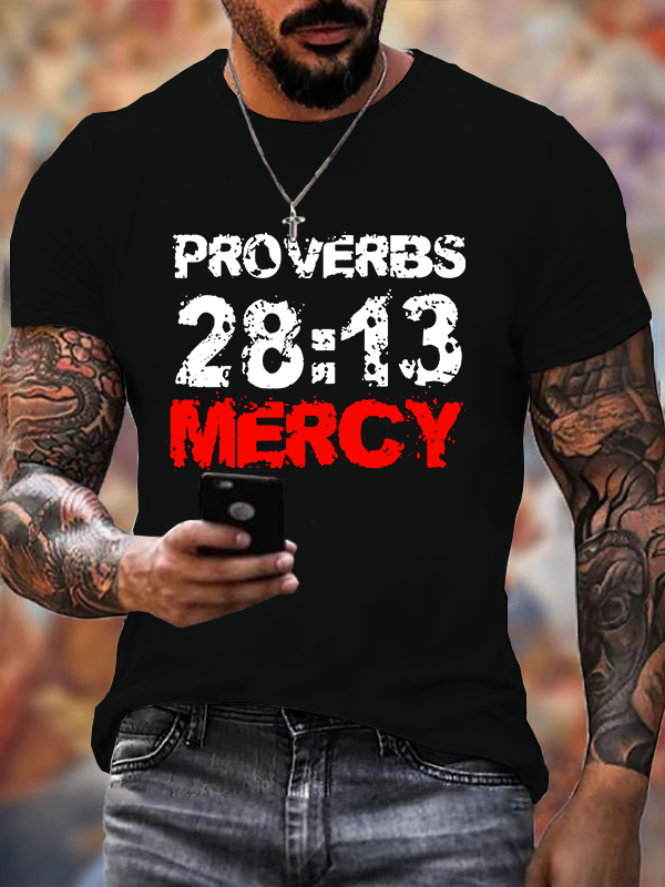 Proverbs 28:13 Mercy Christian Cotton T-shirt
