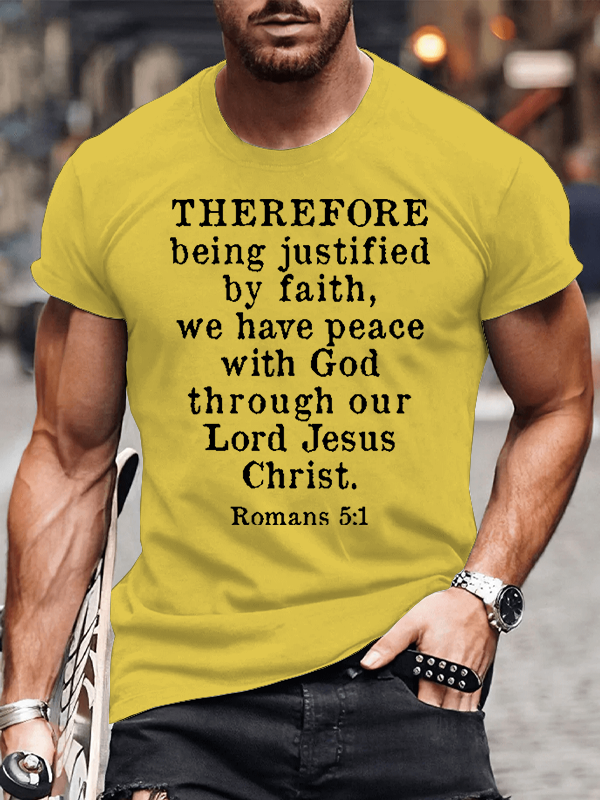 Therefore Being Justified By Faith We Have Peace Romans 5:1 Christian Cotton T-Shirt