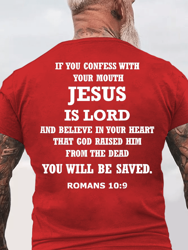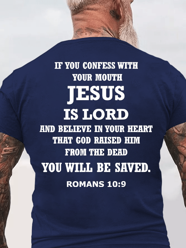If You Confess With Your Mouth Jesus is Lord Romans 10:9 Cotton T-Shirt