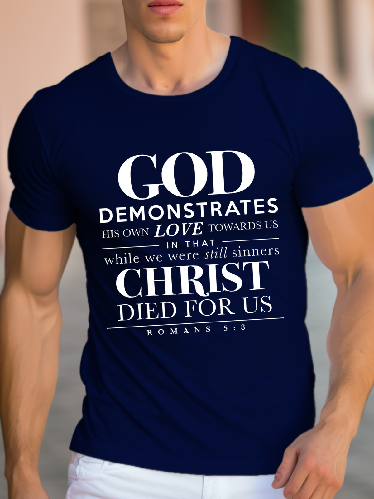 Faith Cross Romans 5:8 Jesus God Christian Cotton T-Shirt