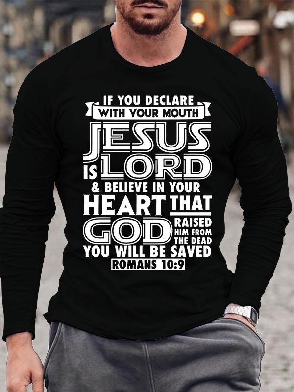 Romans 10:9 Jesus is Lord Christian Cotton Long Sleeve T-Shirt