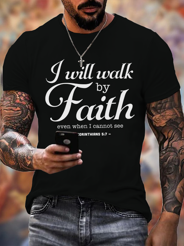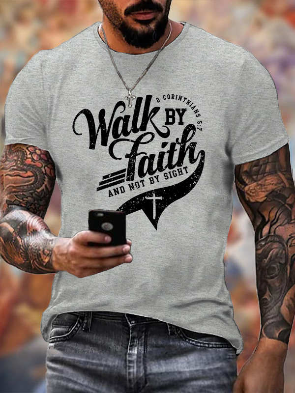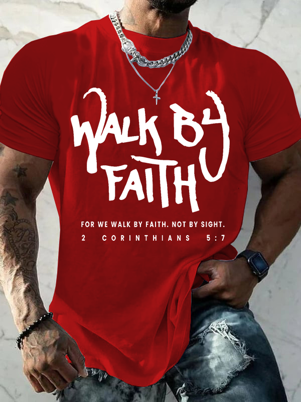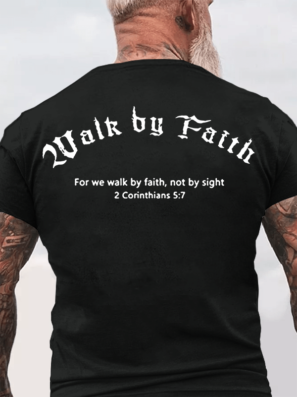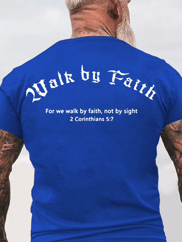 Walk By Faith 2 Corinthians 5:7 Christian Cotton T-Shirt