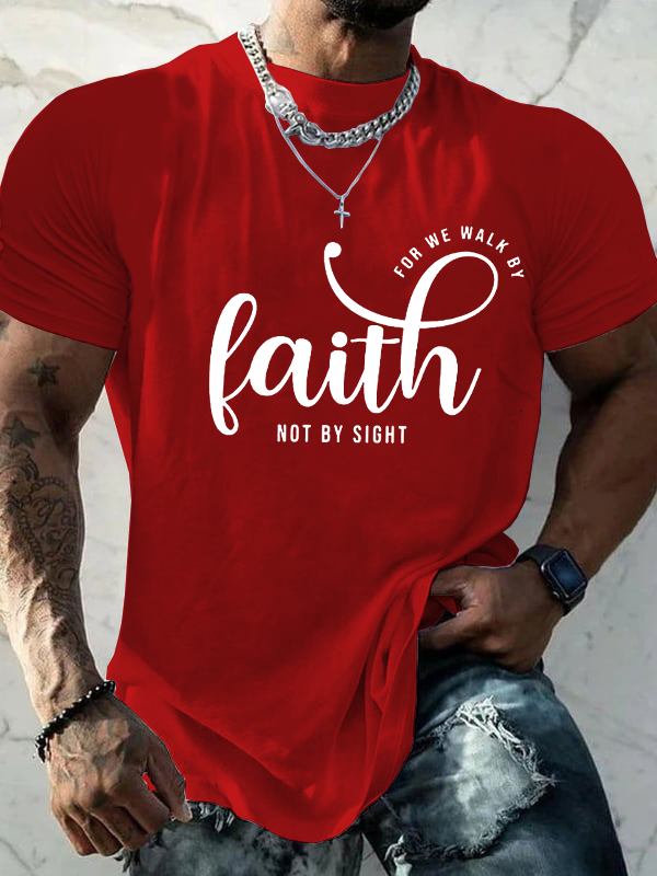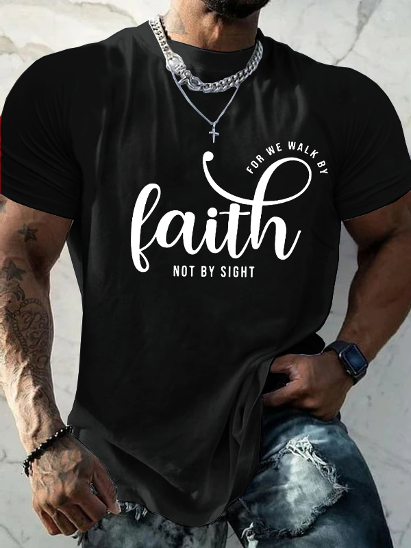 faith for we walk by not by sight Christian Cotton T-Shirt