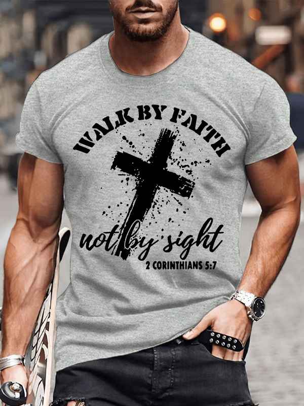 Walk By Faith Not By Sight 2 Corinthians 5:7 Christian Cotton T-Shirt