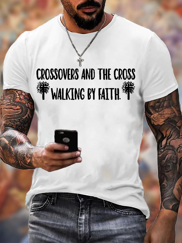 Crossovers and the Cross Walking by Faith Christian Cotton T-Shirt