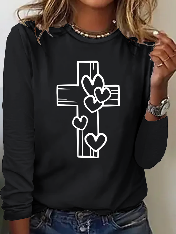 Heart Cross Christian Cotton Women's Long Sleeve T-Shirt