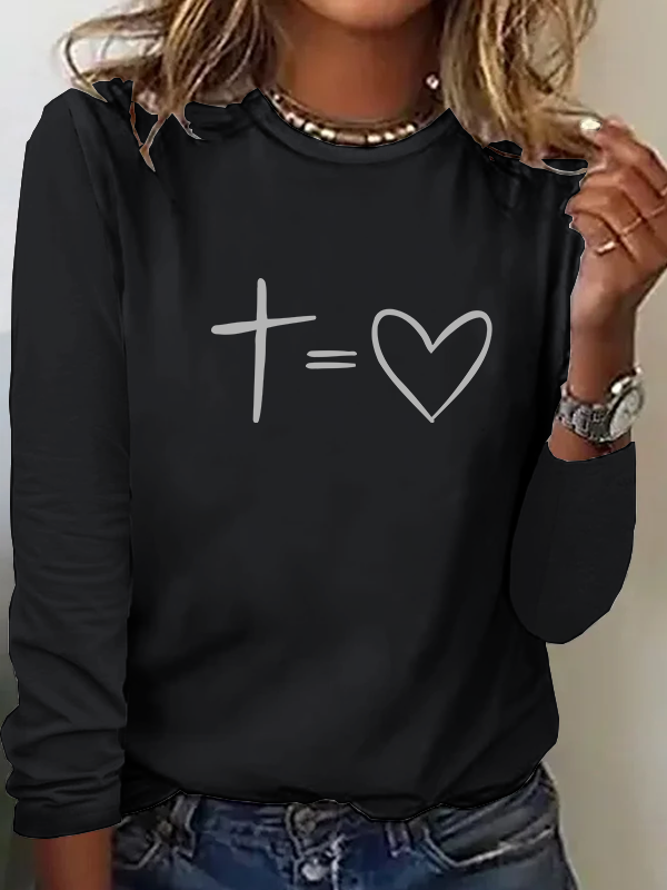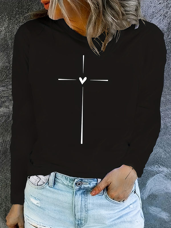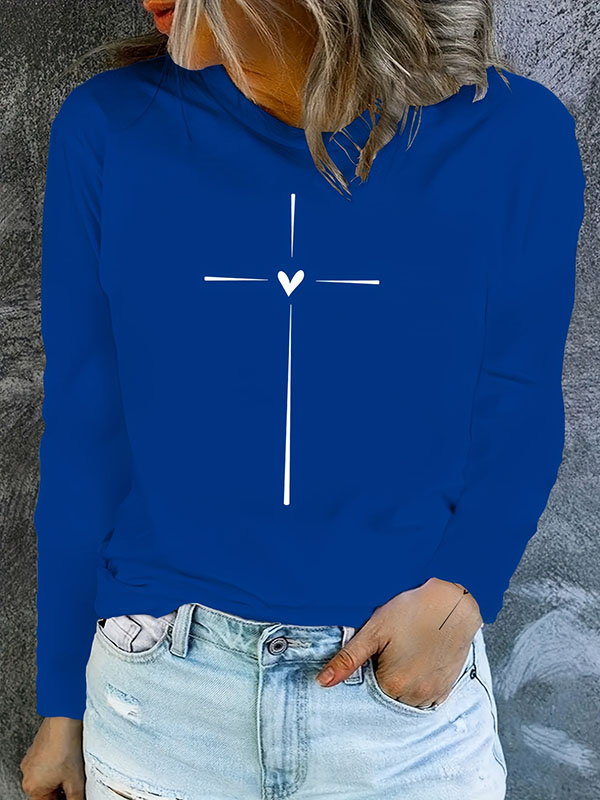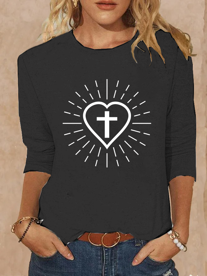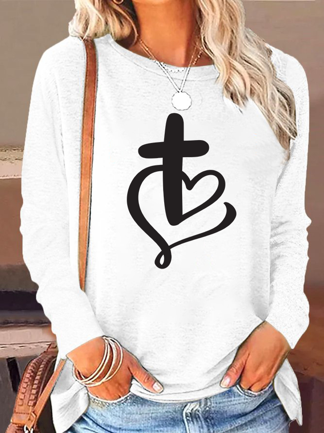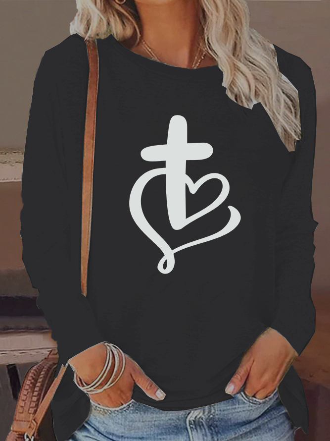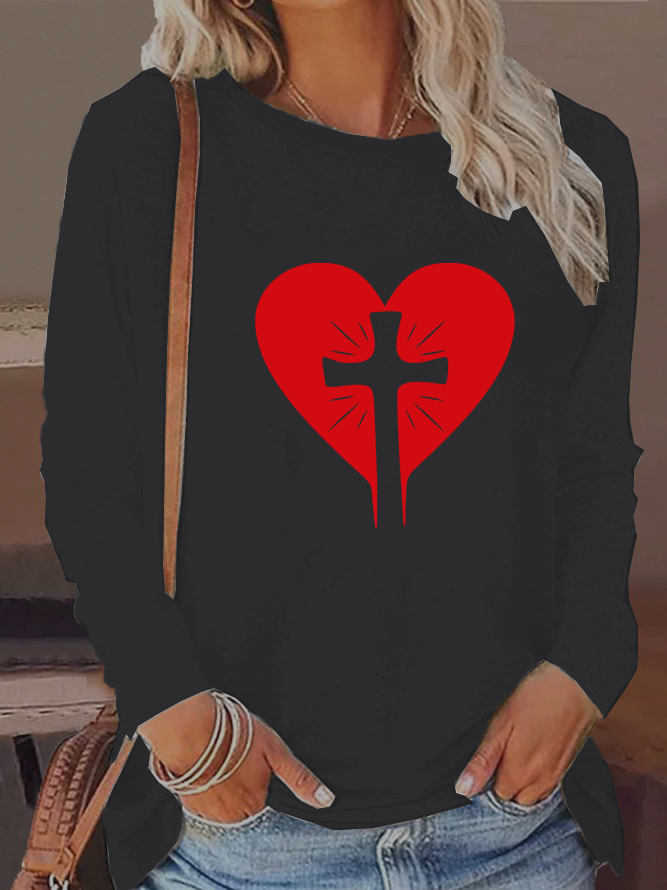 Jesus Heart Cross Christian Cotton Women's Long Sleeve T-Shirt