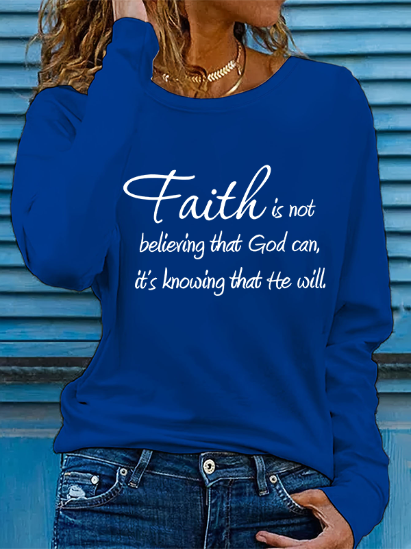 Faith isn't believing God can, but knowing He will Christian Cotton Women's Long Sleeve T-Shirt