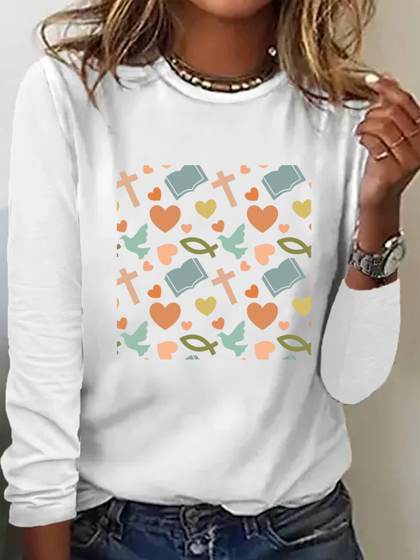 Bible Cross Dove Heart Christian Cotton Women's Long Sleeve T-Shirt
