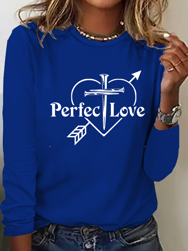 Perfect Love Heart Cross Nails Christian Cotton Women's Long Sleeve T-Shirt
