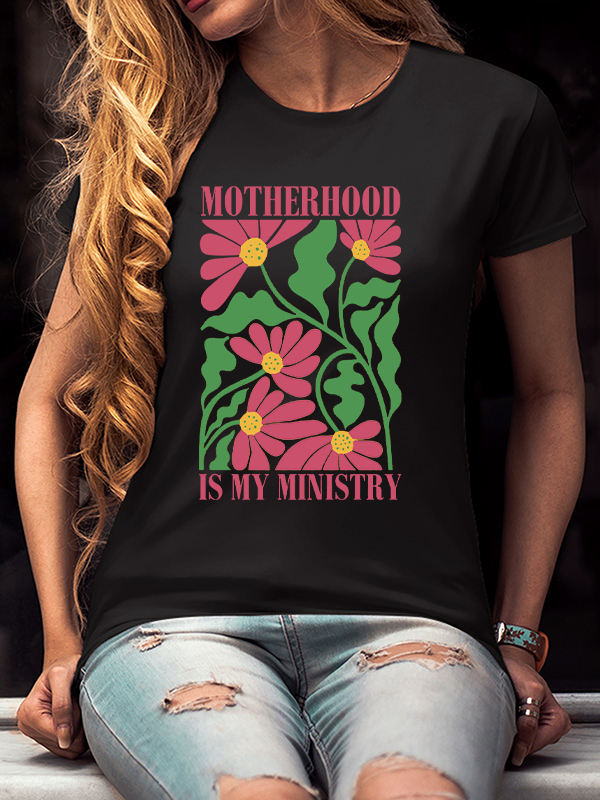 Motherhood is My Ministry Wildflower Christian Cotton T-Shirt