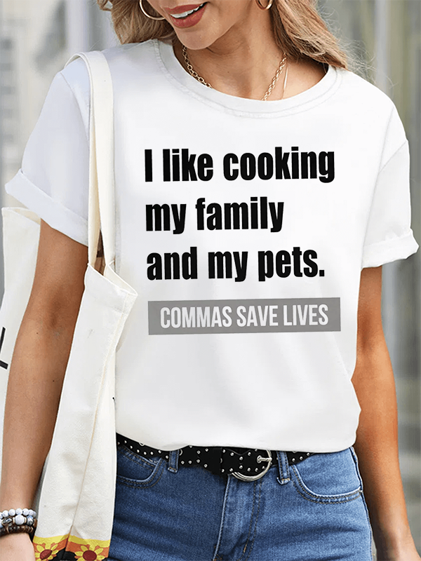 I Like Cooking My Family And My Pets, Commas Save Lives Women's T-shirts