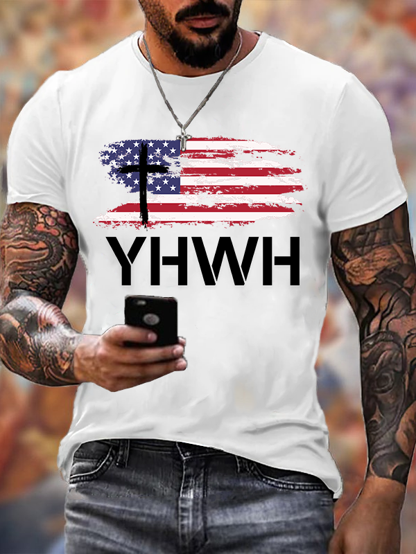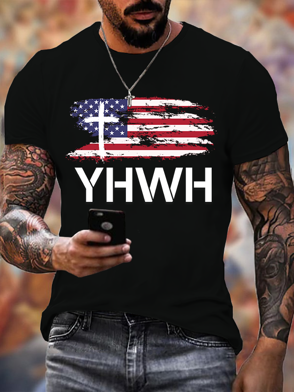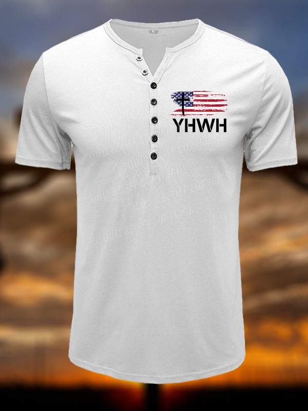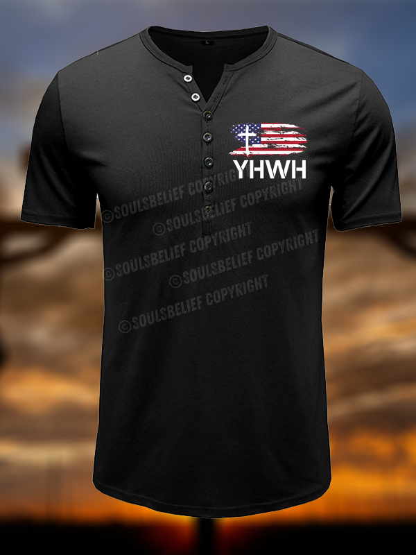 YHWH Faith Flag Christian Henley T Shirt