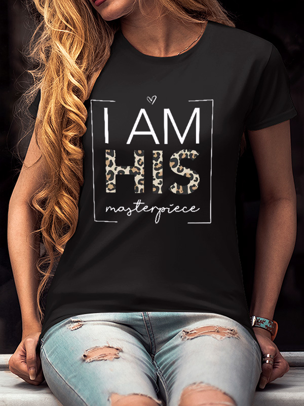 I Am His Masterpiece Leopard Tee Shirts For Women