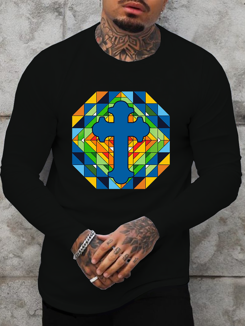 Stained Glass Cross Long Sleeve T-shirt