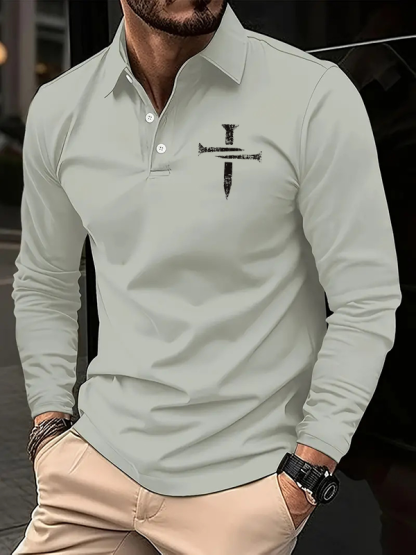 3 Nails Jesus God Christian Cross Jesus Long Sleeve Polo Shirt
