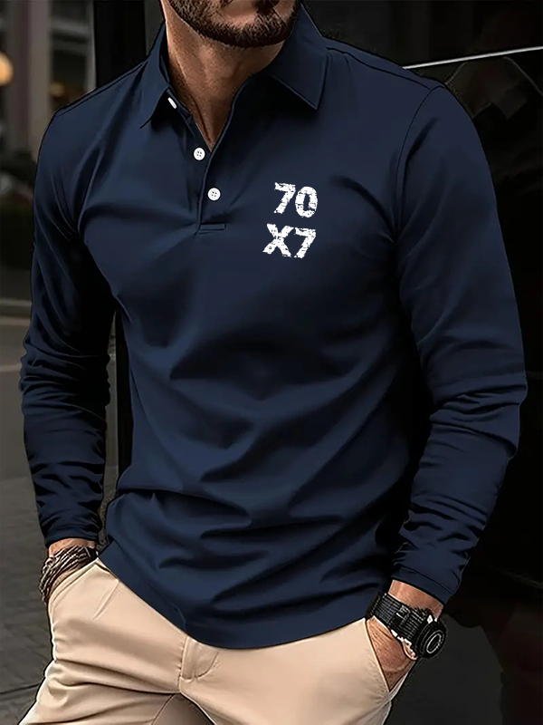 70×7 JesusChristian Cross Jesus Long Sleeve Polo Shirt