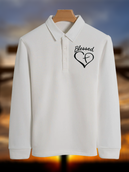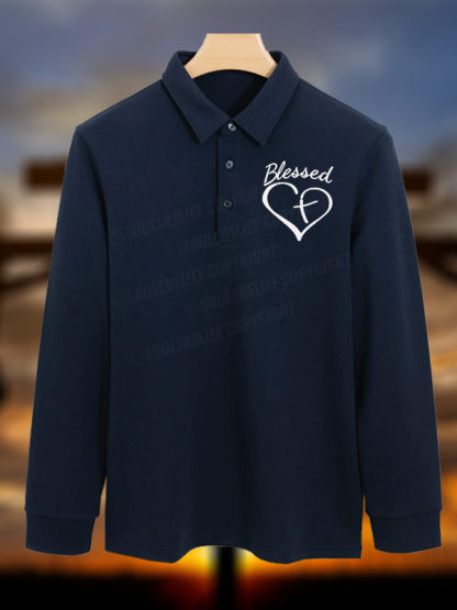 Blessed Christian Cotton Long-sleeve Polo Shirt