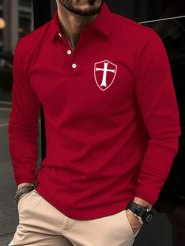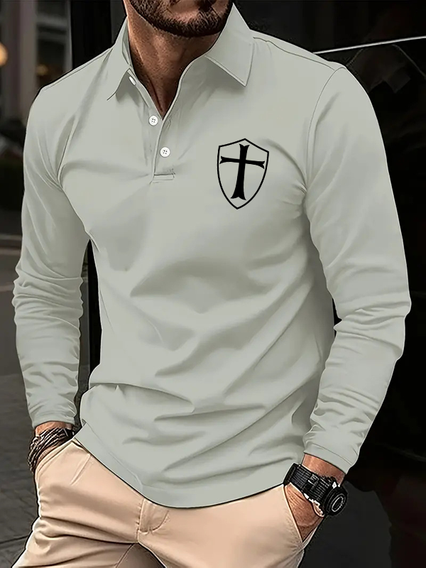 Christian Cross Jesus Long Sleeve Polo Shirt