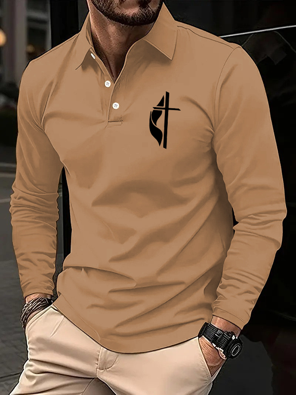 Christian Cross Jesus Long Sleeve Polo Shirt