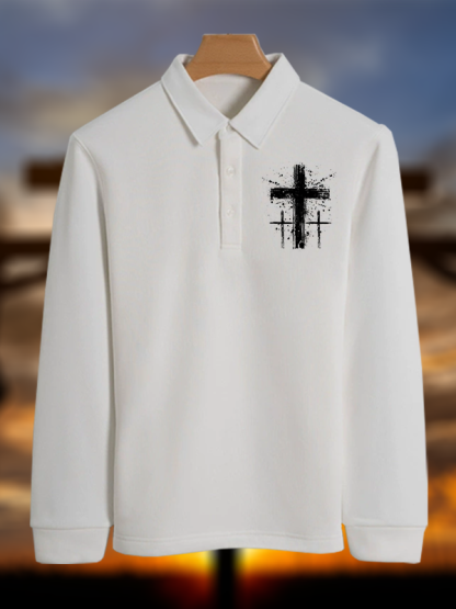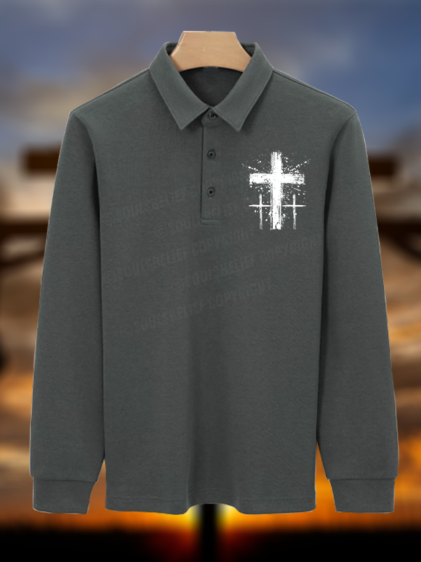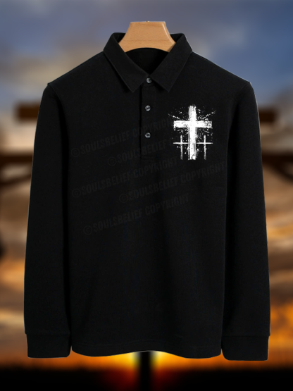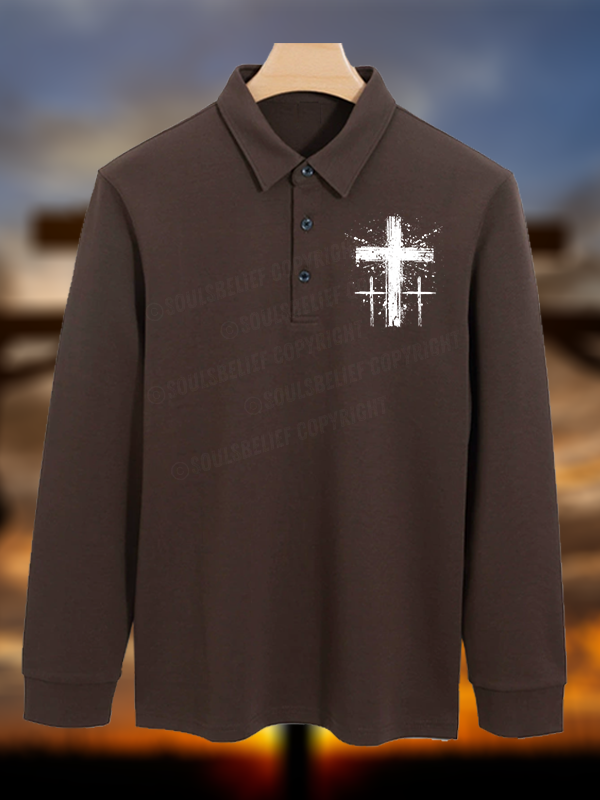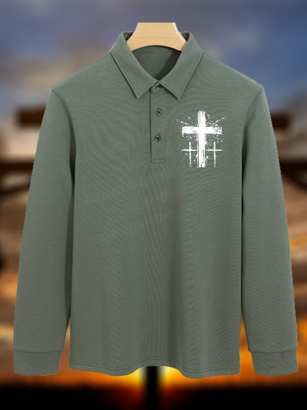 Cross Christian Cotton Long-sleeve Polo Shirt