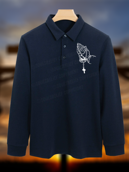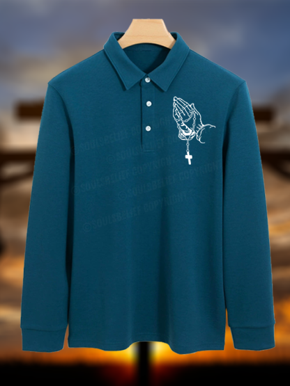 Cross Christian Cotton Long-sleeve Polo Shirt