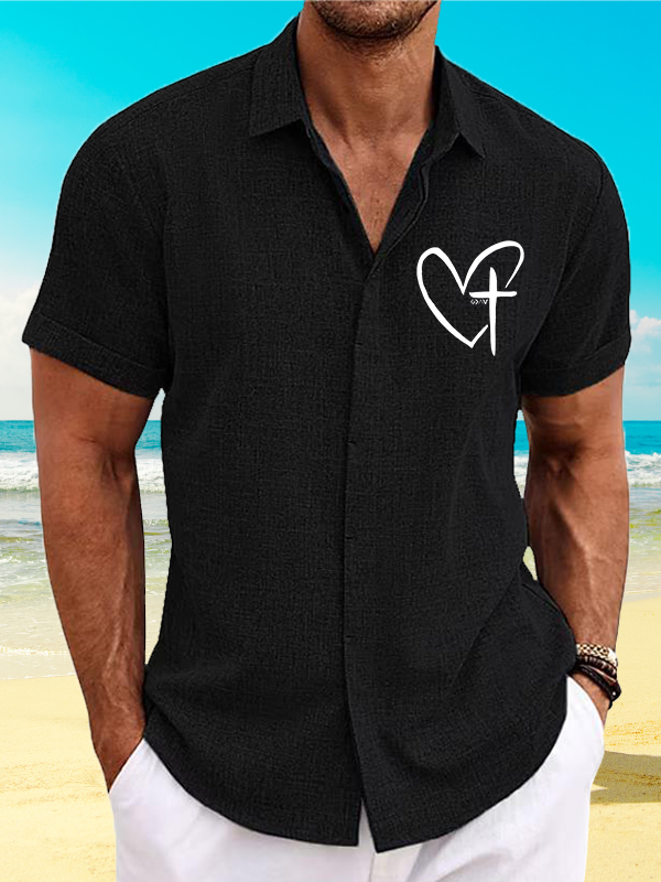 Cross Heart Simple Short Sleeve Shirt