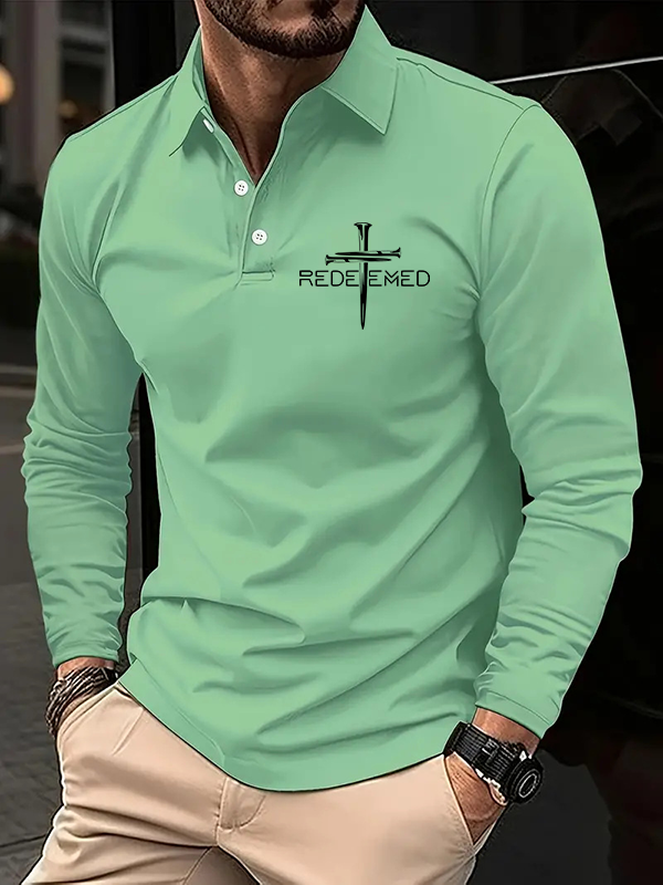 Cross Nails Redeemed Long Sleeve Polo Shirt