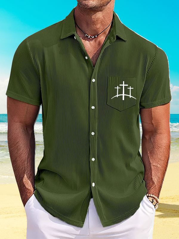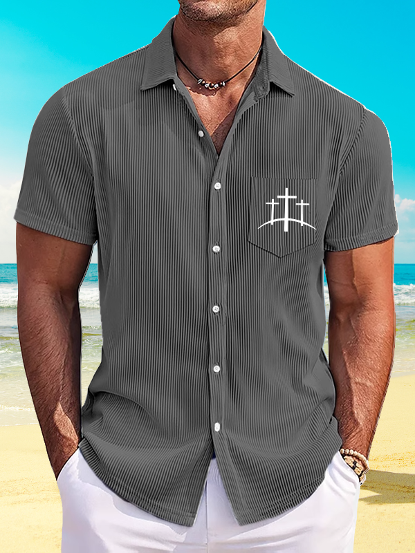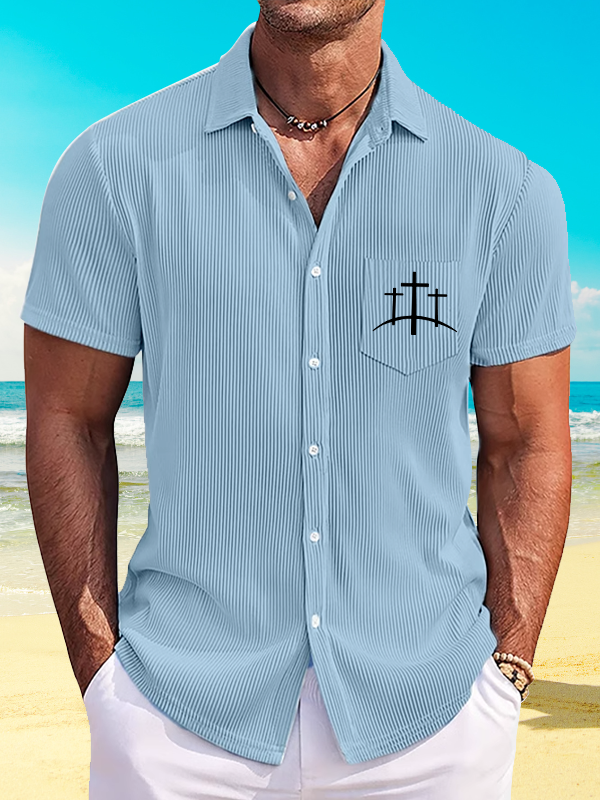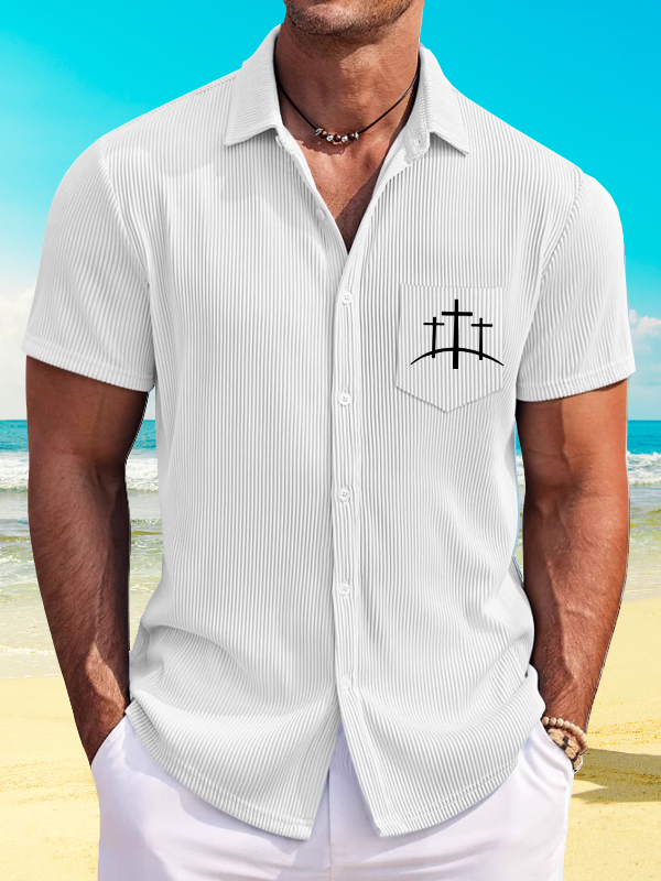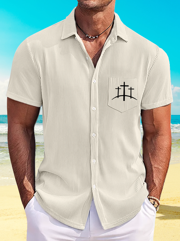 Cross Printed Christian Striped Short-Sleeved Shirt