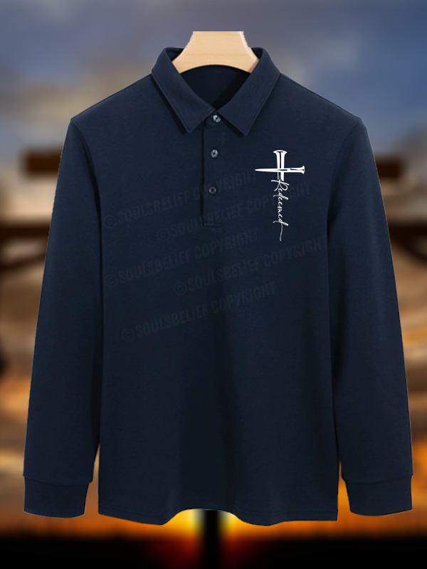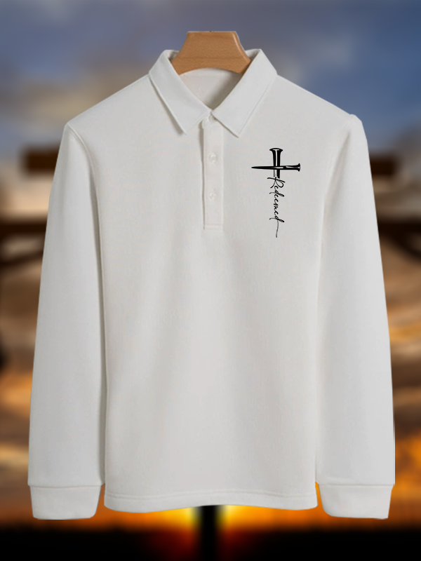 Cross Redeemed Christian Cotton Long-sleeve Polo Shirt