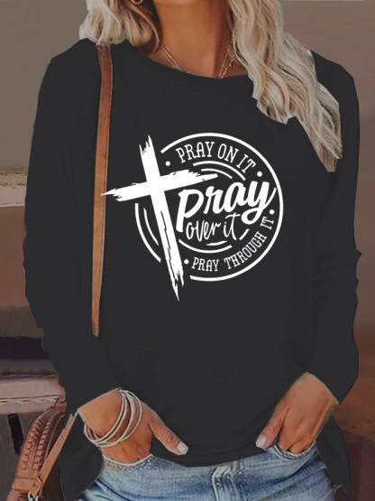 Pray On It Pray Over It Pray Through It Women's Long Sleeve T-Shirt