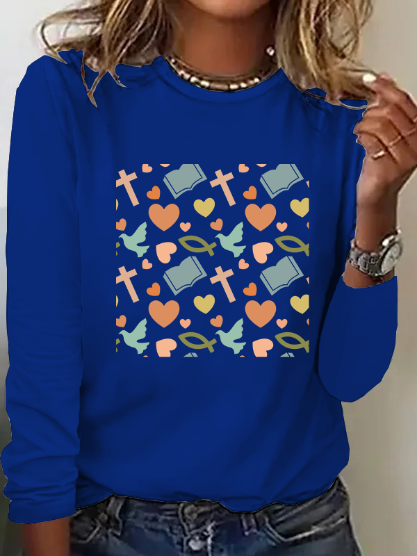 Bible Cross Dove Heart Christian Cotton Women's Long Sleeve T-Shirt