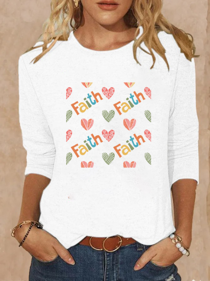 Faith Heart Christian Cotton Women's Long Sleeve T-Shirt