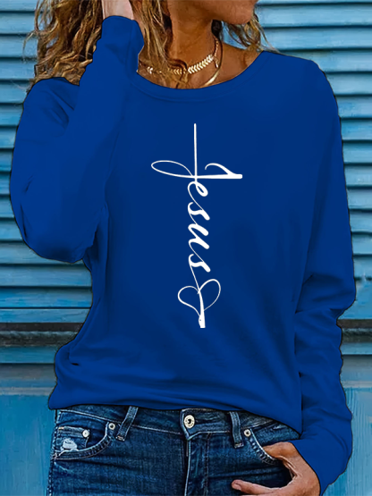 Jesus Heart Cross Christian Cotton Women's Long Sleeve T-Shirt